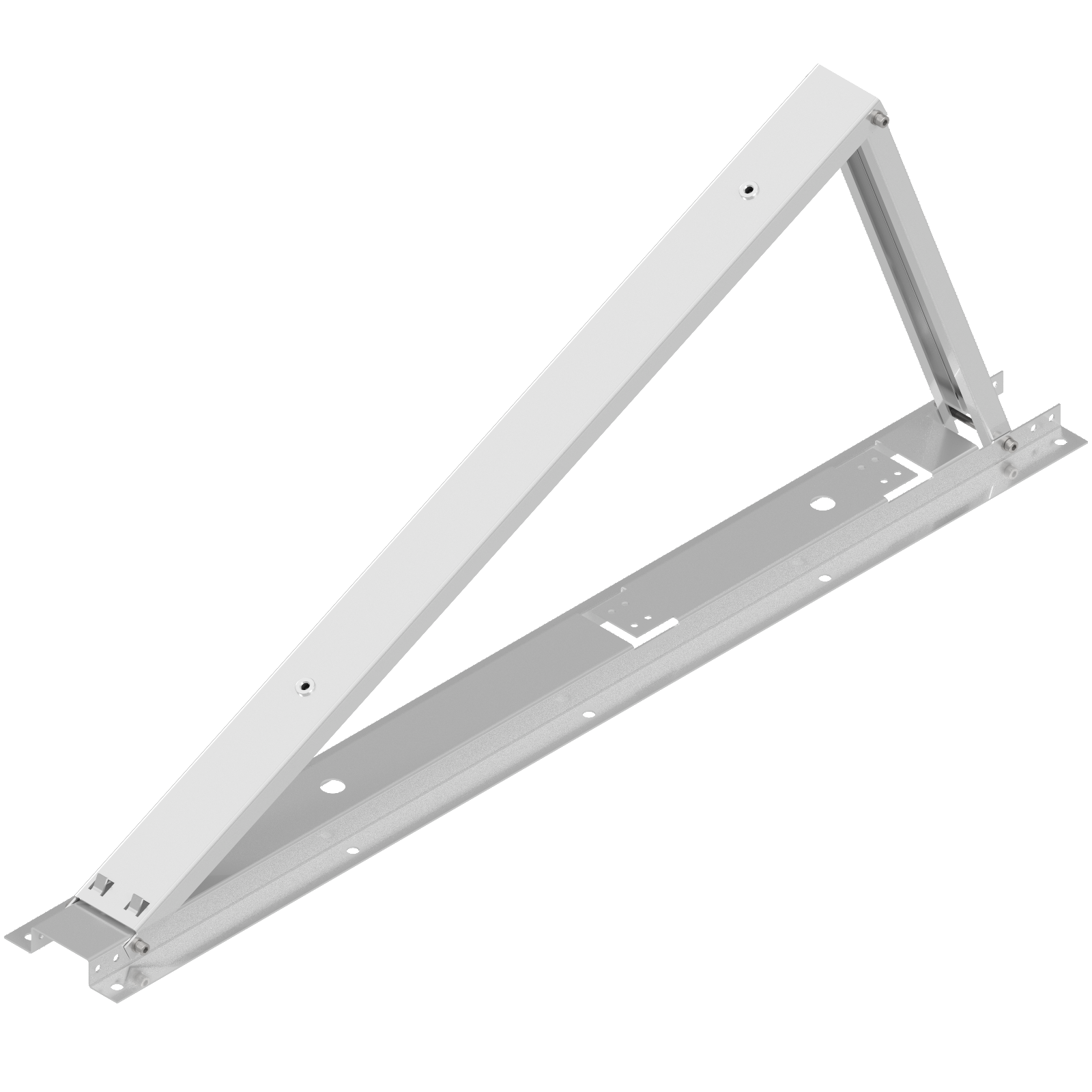 Konstrukce využívá skládací trojúhelníkové podpěry, které se snadno přepravují, rychle montují a umožňují vytvořit stabilní nosný systém pro horizontálně orientované FV moduly. Systém je modulární, takže je vhodný jak pro menší sestavy, tak pro rozsáhlejší střešní pole. V závislosti na zvolené variantě je dostupný se sklonem 15°, 20° nebo 25°.