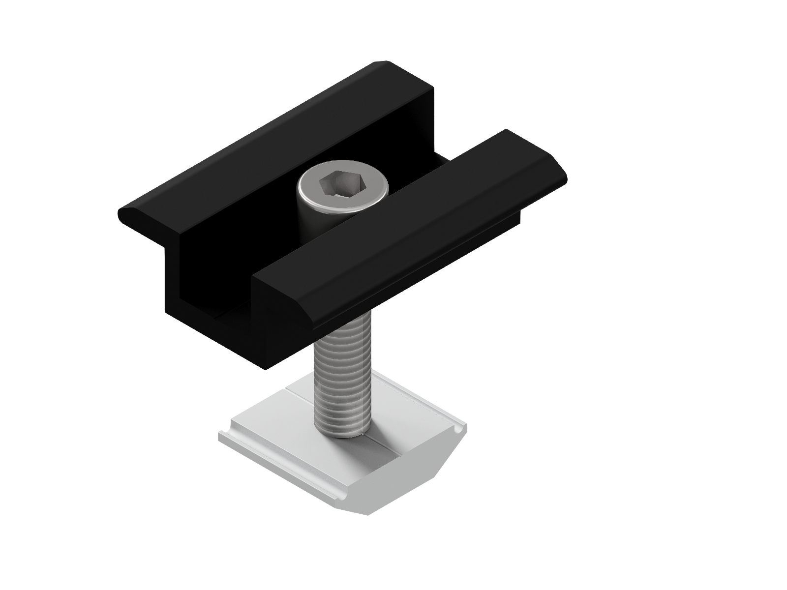 Uchytává dva sousední panely k sobě uprostřed a zároveň je fixuje k montážní konstrukci.